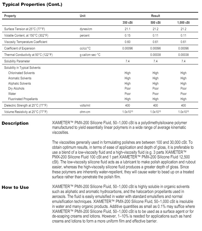Dow Xiameter PMX200-350 cSt TDS